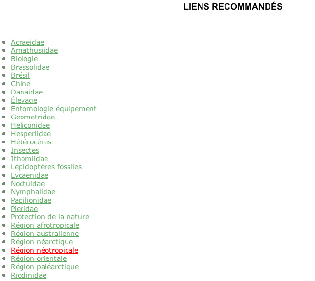 4. … on obtient les liens vers des sites internet consacrés aux lépidoptères de la région néotropicale.