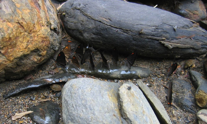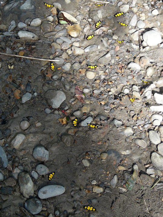 Papilionidae et Pieridae mud-puddlant. Rio Zongo (alt. 600 m). Bolivie, 30 janvier 2008. Photo : J. F. Christensen