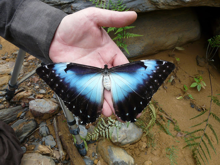 Morpho (Cytheritis) lympharis eros STAUDINGER, 1892 (= M. sulkowskyi eros STAUDINGER, 1892). Cascades de Sacramento Alto (2700 m). Bolivie, 9 février 2012. Photo : Lars Andersen