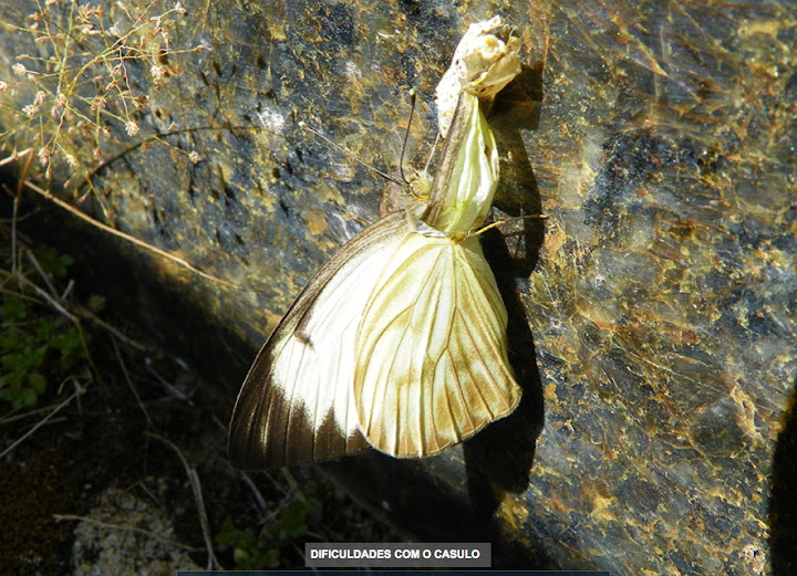 Ascia monuste orseis (GODART, 1819), femelle émergeant de son cocon. Pitangui (MG, Brésil), 8 septembre 2013. Photo : Nicodemos Rosa