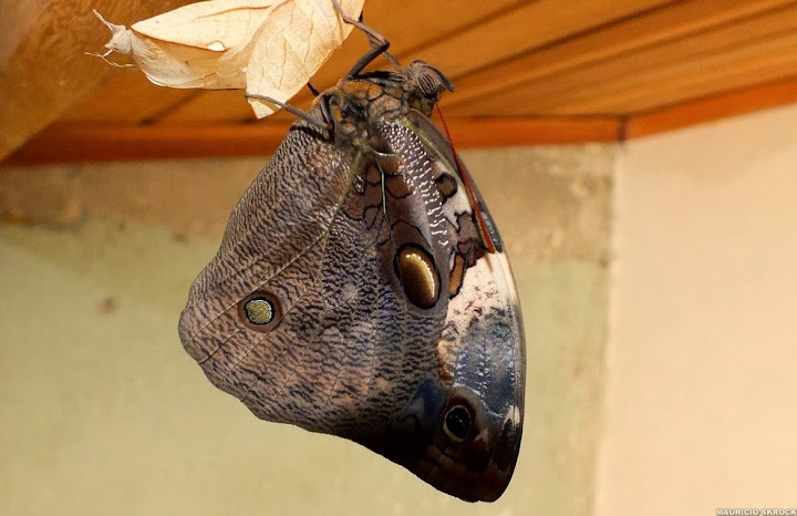 Opsiphanes invirae amplificatus STICHEL, 1904, émergeant. Environs de Curitiba (Paraná, Brésil), 13 novembre 2013. Photo : Mauricio Skrock