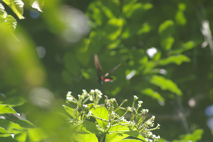 Parides butinant les fleurs dans la canopée (5 ou 6 exemplaires présents sur le même arbre à 7 mètres au-dessus du sol). Fazenda d’Arariba (Ubatuba, SP), 22 février 2011. Photo : J.-M. Gayman