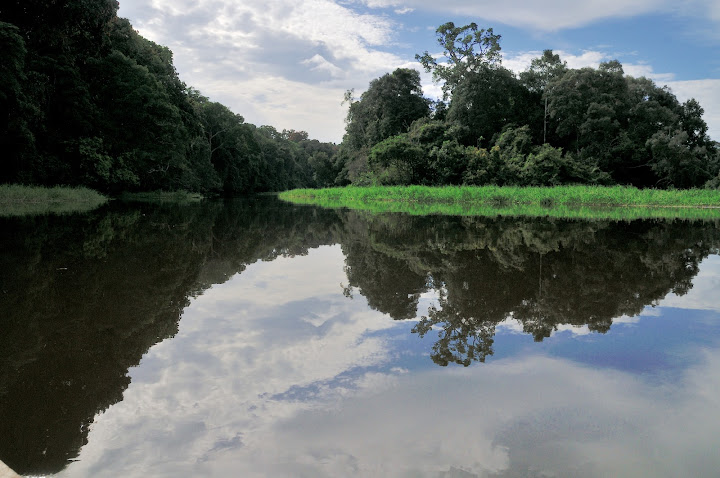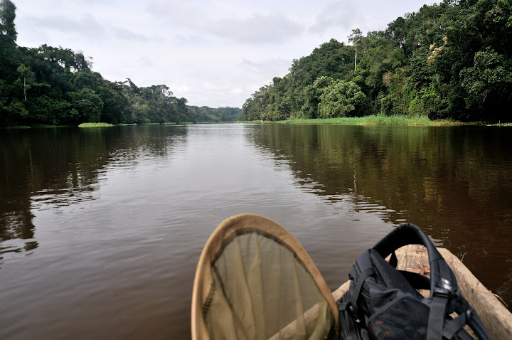 Sur la Soo, affluent de la Nyong, avec le piroguier Serge. Ebogo (Cameroun), 27 avril 2013. Photo : C. Renoton