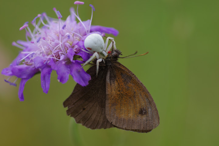 Maniola jurtina L., 1758 capturé par Misumena vatia CLERCK, 1757. Les Hautes-Lisières (Rouvres, 28), 9 juillet 2012. Photo : J.-M. Gayman